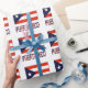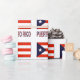 Die rote, weiße und blaue puerto-ricanische Flagge mit den Worten PUERTO RICO darunter. Die Fahne hat drei rote Streifen und zwei weiße Streifen mit einem blauen Dreieck auf der links Seite. In der Mitte des Dreiecks ist ein weißer Stern. Geschenkpapier, um Ihr Erbe zu teilen.