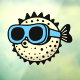 Niedliche Puffer Fische mit Schwimmbrille. Alle Farben können geändert werden.