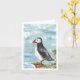 Eine leere Grußkarte mit einem Aquarellbild eines Puffers, der auf einer Klippe steht. Ideal für den Vogelliebhaber in Ihrem Leben!