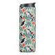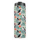 Farbenfrohe und lustige Puffin-Muster mit viel üppigem, grünem Laub auf warmen beigen Hintergrund. Lebhafte grüne und orangefarbene Farben.