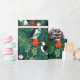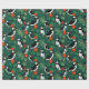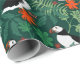 Farbenfrohe und lustige Puffin-Muster mit viel Grün, Grün und Blume. Lebhafte grüne und orangefarbene Farben.