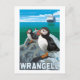 Puffins & Cruise Ship - Wrangell, Alaska - Vintage Travel Poster wurde 2007 gegründet. Dieses Bild zeigt Szenen aus Wrangell, AK.