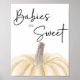 Das **Pumpkin Baby Dusche "Babies Are Sweet"** Zeichen ist eine reizvolle Dekoration für eine Babydusche zum Herbst. Typischerweise zeichnet es sich durch ein niedliches Kürbisdesign und den Satz "Babys sind süß" aus, was es zu einer charmanten Art macht, die bevorstehende Ankunft eines neuen Babys zu feiern. Dieses Schild kann zur Verbesserung des allgemeinen Themas der Dusche verwendet werden und kann in der Nähe des Geschenktisches, des Desserttisches oder als Teil der Gesamtdekoration platziert werden.