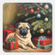 Pug celebrates Christmas Quadratischer Aufkleber