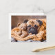 Pug Snuggling with Teddy Bear Blanket Postkarte