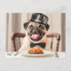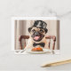 Pug Wearing Hat Sitting at Table Postkarte
