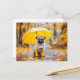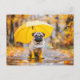 Pug with Umbrella and Boots in Rain Postkarte