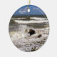 Spray fliegt, wenn eine Meereswelle in einen Felsen am Ufer des Puget Sound von Washington Staaten stürzt. Schaum aus weißem Meer stürzt sich über die Kiesel am Strand. Im Hintergrund sind mehr die langen, rollenden Wellen der Nordwestküste des Pazifiks. Der Himmel ist blau über dem Kopf. Mit diesem Ornament bringen Sie dieses wilde Foto zum Baum. Fügen Sie einfach dieses Jahr hinzu - oder das Jahr Ihres Besuchs an der Nordküste Washingtons. Diese Ozeanszene wird mit der Küstendekoration großartig aussehen. Es ist perfekt für einen Weihnachtsbaum in einem Strandhaus.