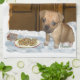 Atemberaubende Urlaubskunst eines Puggles wartete auf der Veranda für den Weihnachtsmann. Er sitzt geduldig und bewacht die Kekse, die dort für den Weihnachtsmann platziert werden. Unsere exklusiven Weihnachtskarten haben unser Original, ich glaube noch an das Gedicht drin, und werden die Freude der Liebsten sein, die sie empfangen.