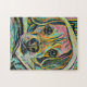 Dieses Rätsel wurde entworfen, indem mein Cousin Andy ein Foto von seiner Puggle Emma machte und das Foto in einen Schwarzweißdruck umwandelte. Die Farbe und der Stil dann mit farbigen Stiften restauriert.