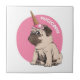 Bild durch Afishka | Shutterstock. Bild Identifikation: 1170091624% pipe% entzückender beige Welpe Mops in einer Eiscreme-Partykappe auf einem rosa Hintergrund. Pugicorn - Beschriftungszitat.