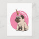 Bild von Afishka | Schotter. Bild-ID: 1170091624 | Adorable beige Welpe Mops in einem Eis-Party Kappe auf einem rosa Hintergrund. Pugicorn - Zitat schreiben.