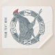 Eine Abbildung eines Pukeko oder einer Sumpfhenne. Dieser Vogel wird im Stil eines Holzschnitts oder eines Linoschnitts gezeichnet. Pukekos sind Vögel, die in Neuseeland / Aoteatoa heimisch sind. Dieser Pukeko ist blau, mit einem roten Schnabel und weißen Schwanz Federn.