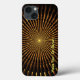 Ein schwarz-gelbes, rotes, sternähnliches Fraktal. Fügen Sie Ihren eigenen Text hinzu.