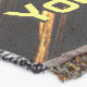 Ein schwarz-gelbes, rotes, sternähnliches Fraktal. Fügen Sie Ihren eigenen Text hinzu.