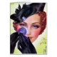 Angepasstes Vintages Titelseite. Hellgrüner Hintergrund mit schönem kurzhaarigem gelesenem Kopf im schwarzen Hut und Handschuhe, die ihre Nase antreiben.