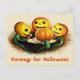 Diese Halloween-Kürbisse holen sich ihren Mut für die Spuk Halloween-Nacht vor sich, indem sie eine Kartenhand spielen. Eine Postkarte von Ellen Clapsaddle wurde hier neu gedruckt.