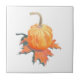 Feiern Sie den Herbst mit dieser farbenfrohen Abbildung eines Miniaturkürbis auf einem Eichenblatt. Kunstwerk: Farbstift auf Papier. Copyright Dominic A. White. Alle Rechte vorbehalten.