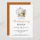 Pumpkin Blume Erntedank Dinner Einladung. Dieses elegante Erntedank überzeugt durch ein stilvolles Design mit einer eleganten Kalligraphie, die eine Touch von Wärme und Tradition schafft. Ein wunderschöner illustrierter Kürbis, der mit Blume in reichen Herbstfarben geschmückt ist, bildet das Herzstück der Saison. Ideal für die Einladung von Lieben, an der Freude und Dankbarkeit des Erntedanks teilzunehmen.