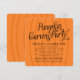 Stilvolle Einladungen Set für ein lustiges Kürbisschnitzereien Party! Die Einladung beinhaltet einen orangefarbenen Kürbishintergrund mit schwarzem Skripttitel und benutzerdefiniertem Text. Auf der Rückseite der Karte befindet sich ein Muster von Jack o' Laternenkürbissen.