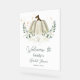 Herzlich willkommen zu Ihrem besonderen Tag mit diesem Party im Herbst des Brautparty, das mit weißem Kürbisgrün und grüner Kalligraphie-Schrift besticht. Das vollkommene, weiße Kürbis-Brautparty-Willkommensschild für die Herbstdekoration des Brautparty.