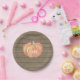 Pumpkin Fall First Birthday Party Paper Teller. Rustikaler Holzboden.