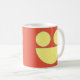 Zwei Gesichter - eins glücklich, eins traurig - reduzierten sich auf ihre grundlegendste Geometrie. Es ist das Wesen von Halloween auf einer Tasse. Eine Touch moderner Kunstprahlerei für Ihren bevorzugten Halloweentrank.