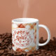 Diese festliche Herbstkaffee-Tasse bietet das Textbild "Pumpkin Spice and Everything Nice" auf einem karierten, orangefarbenen, weißen und bordeauxfarbenen Hintergrund. Ideal für diesen Kaffee im Herbst.
