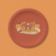 Eine niedliche rotbraune Papiertafel für ein Herbstfest mit der Aquarelldarstellung einiger Kürbisgewürzpfannkuchen. Wählen Sie die Größe und Form Ihres Tellers aus. Sehen Sie in der Sammlung nach, ob passende Papierbecher vorhanden sind. © ArianeC Illustrations-Alle Rechte vorbehalten