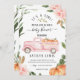 Herrliche Vegetation und blumenreiche Kürbiseinladung mit einem rosa LKW gefüllt mit Kürbissen.