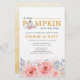 Teilen Sie mit dieser niedlichen Kürbis Blumenfall-Babydusche-Einladungskarte die fröhlichen Neuigkeiten Ihres neuen Hauses. Anpassen Sie diese leicht zu bearbeitende moderne trendige Vorlage, indem Sie oben auf die Schaltfläche "Personalisieren" klicken, um die Hintergrundfarbe zu ändern oder den Text neu zu ordnen. Wählen Sie im Untermenü der Schaltfläche "Personalisieren" den Link "Weitere Anpassungen vornehmen" aus.