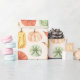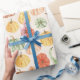 This wrapping paper feature a watercolor pattern of pumpkins and gourds, perfect for an autumn party.