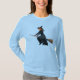 Eine Hexe mit einem Jack-o-Laterne Kopf fliegt einen Besen.