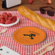 Dieser niedliche Jack-o-Laternen Kürbis in eine Hexe, die auf diesen Halloween Party-Tellern vorgestellt wird.