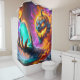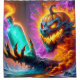 Dieser Duschvorhang hat einen verrückten Kürbismann darauf.