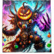 Dieser Duschvorhang hat einen beängstigenden Kürbismann darauf.