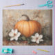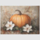 Orangefarbener Kürbis umgeben von weißen magnolischen Blume.