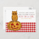 Pumpkin Owl & Gingham New Baby Ankündigung Postcard. Diese Ankündigung hat die Worte: "Eine Eule und ein Hoot und ein Kürbis zum Booten, Junge oder ein Mädchen, das wir nicht sagen werden". Der Hintergrund hat ein gepflegtes Gingham-Muster, das das Bauerndesign ergänzt, ideal, um Ihren Lieben lassen, dass ein neuer Kürbis auf dem Weg ist.