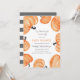 Halloween Babydusche Einladung mit einem whimsical und lustig Orange und schwarz Aquarell bemalt Kürbis Design von Shelby Allison.