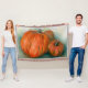 Wunderbar gemütlich für die Herbstsaison, ist diese Decke mit meinen originalen Kunstwerken in weichen Pastellfarben bedruckt, die drei hübsche Orangenkürbisse Set in einem Herbstgartenfleck darstellen.