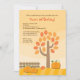 Eine saisonale Einladung, die perfekt für jeden Herbstfest ist. Die Gradientencreme zu pfirsichfarbenem Hintergrund verfügt über einen Zaun, einen Baum mit Herbstblättern und Kürbissen. Design von Vecteezy - Saisonbaum von Zhaolifang.Die Karte lässt sich leicht mit Ihrem Text, Schriftart, Schriftart, Papierform und der Auswahl von sechs Papiertypen anpassen.