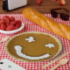 Weißcreme-Happy-Gesicht auf Erntedank Kürbiskuchen