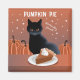 Colourful artwork depicting a delicious Pumpkin Pie, and the cat has his eyes on the nice swirl of cream!