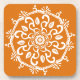 Dieses weiße Mandala sitzt auf einem kuchenfarbenen Kürbiskuchen-Hintergrund. Die Farbe ist kreativ und warm. Teil der Payon Mandala Kollektion.