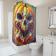 Dieser Duschvorhang hat einen Kürbisschädel darauf.