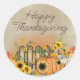 Pumpkin Sunflowers Picket Fence Happy Thanksgiving Runder Aufkleber