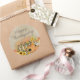 "Happy Thanksgiving" Aufkleber mit orangen und weißen Kürbissen, gelben Sonnenblumen und einem rustikalen Picketzaun. Ideal für Geschenktaschen und Umschlag Aufkleber.