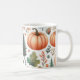 Eine Kürbismuster-Tasse mit einem Aquarellherbstdesign mit fallendem Blätter. Ideal für Kürbisspitzliebhaber oder als niedliche Saisondekoration.