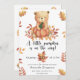 "Es ist ein Beary Sweet Baby unterwegs". Feiern Sie mit diesem Teddy Bären Thema Baby Dusche Party! Der niedliche Teddybär mit einem Herbstkürbis in seinen Pfoten sitzt im Herbstwald. Auf der Rückseite der Karte befinden sich Herbstblätter.