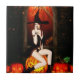 "Pumpkin Throne Hexe" Eine zauberhafte Rothaarzauberin sitzt auf einer glühenden Jack-o'-Laterne, gerahmt von einem gotischen Bogenfenster und einer unheimlichen, verzauberten Waldkulisse. Mit glühenden Kürbissen zu Füßen und einem schelhaften Aussehen bringt sie dunklen Glamour in die Halloween-Nacht.